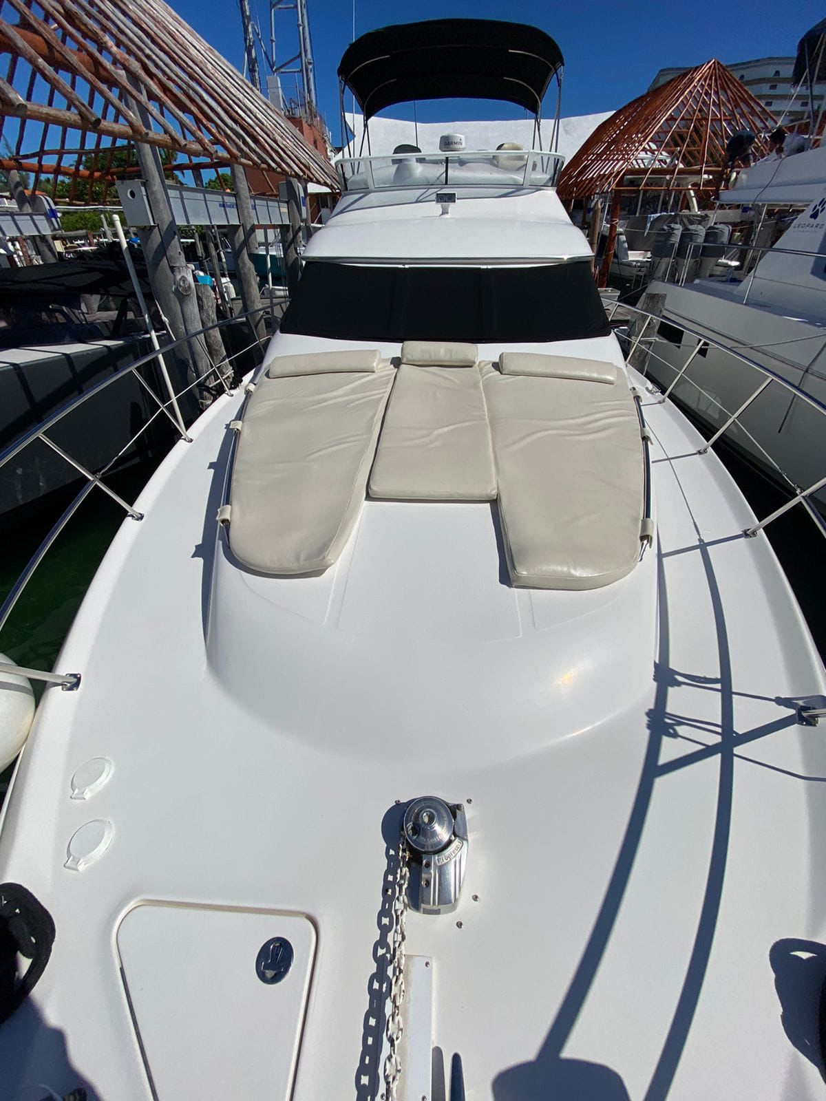 En la parte superior, en la punta del yate se encuentran los asoleadores para los amantes del sol.