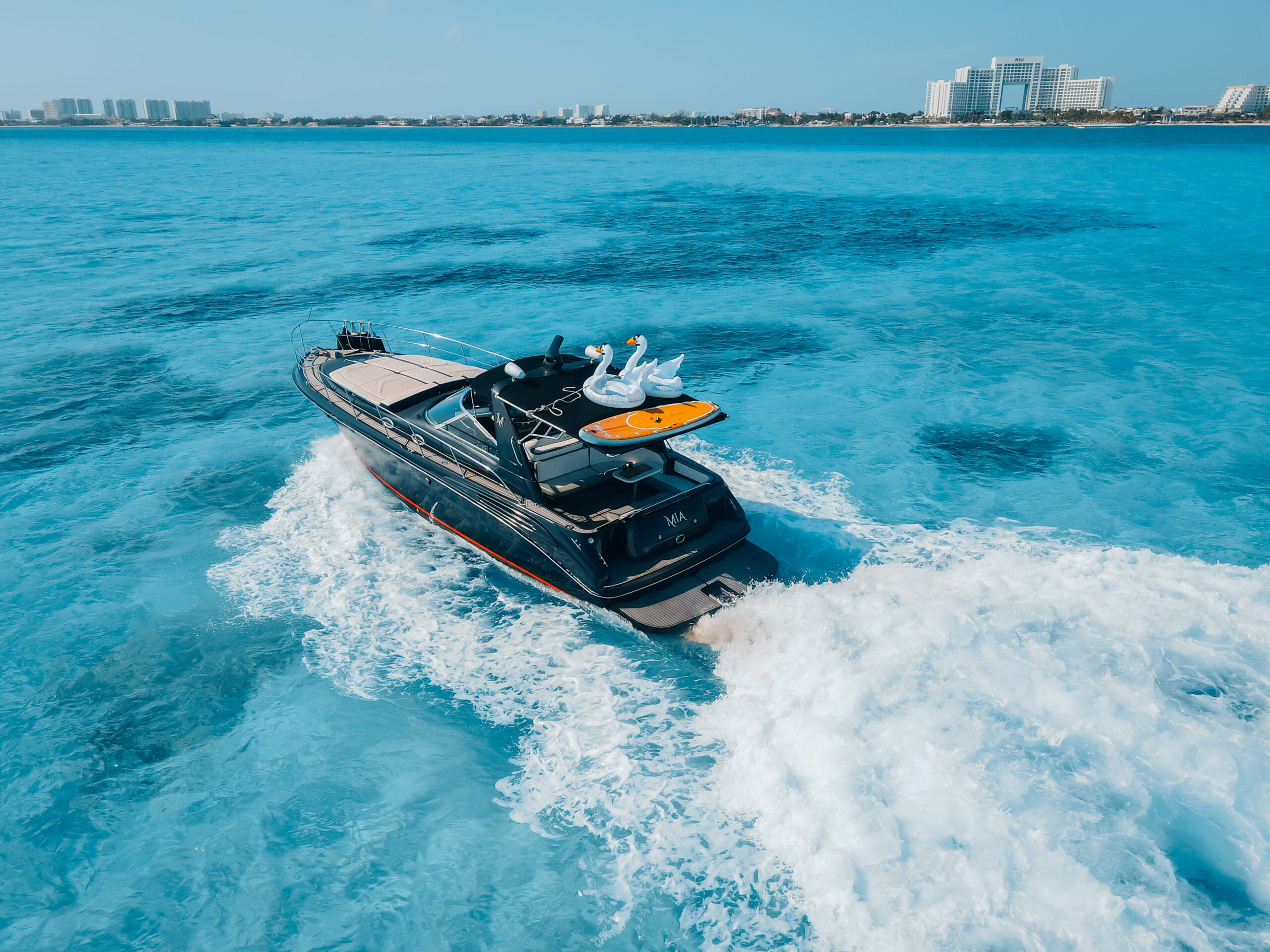 MIA is a completely black 40-foot yacht, excellent for 13 people looking for something daring and different on their outing.