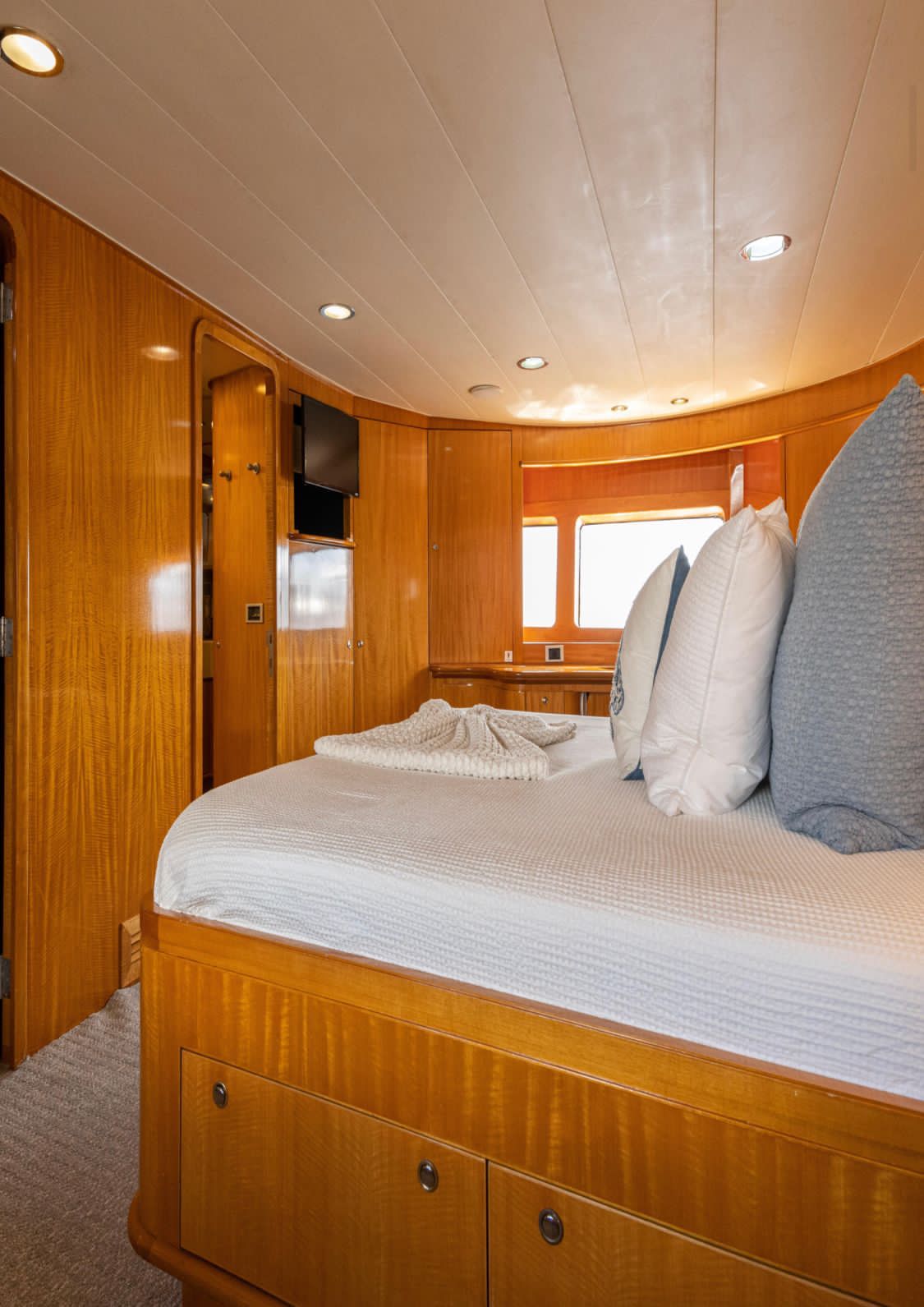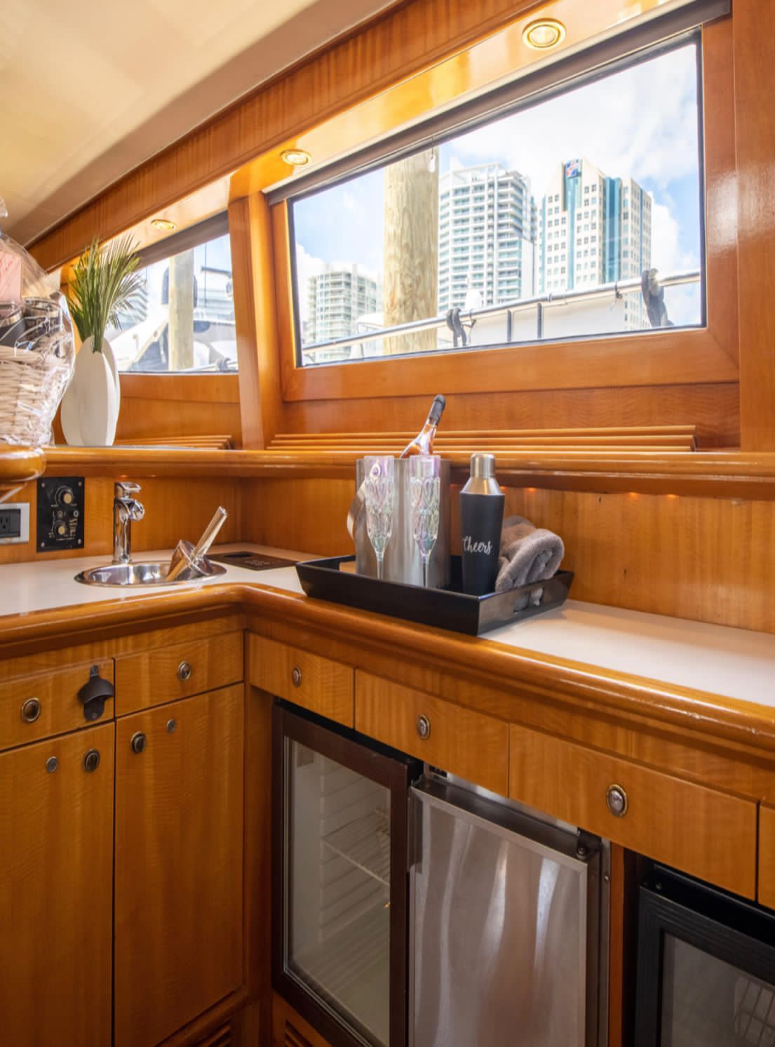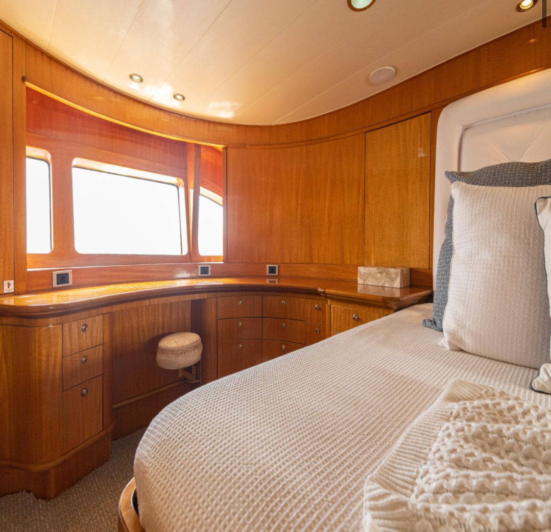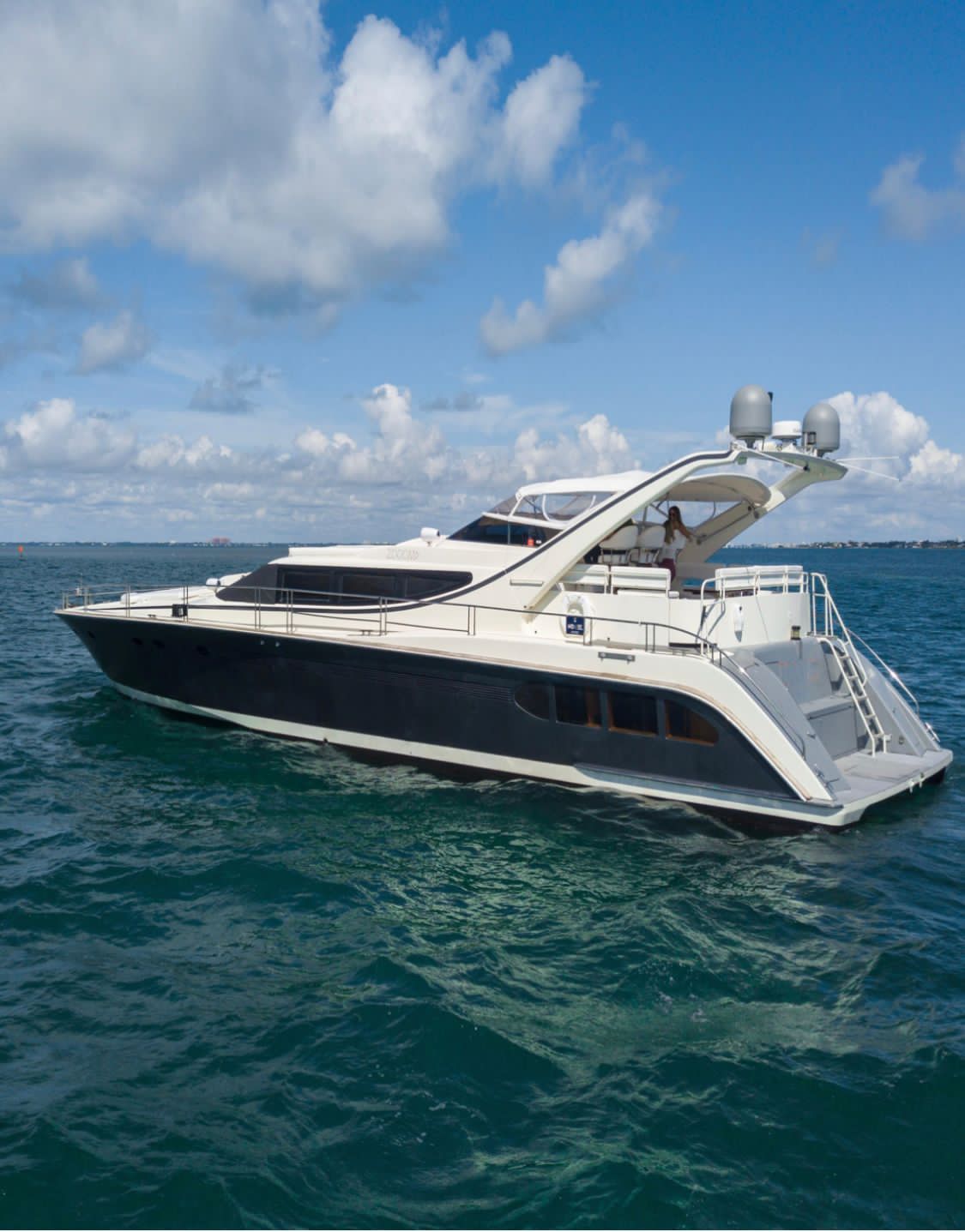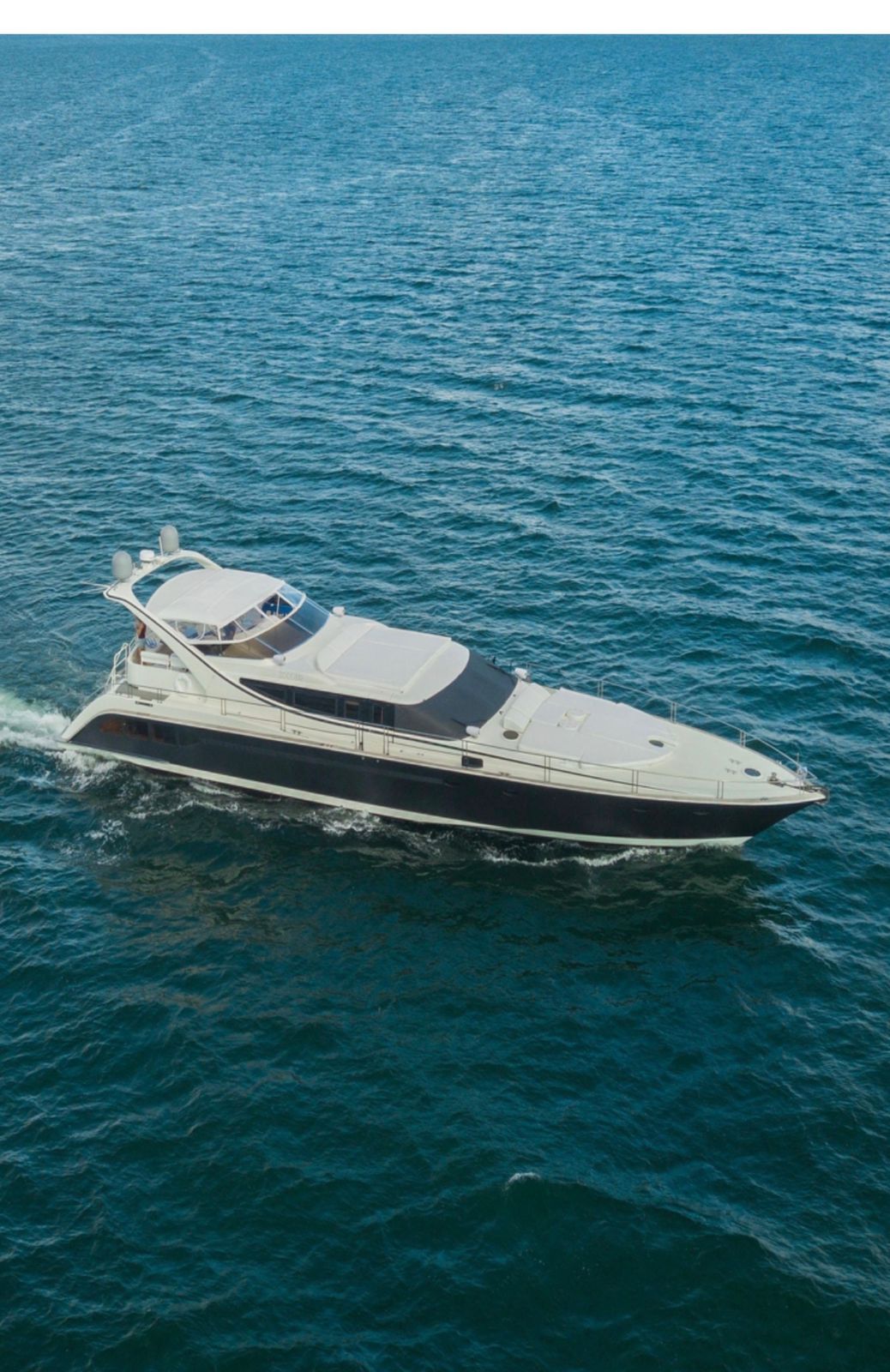 The 80ft. Palmer Johnson yacht, with a capacity of up to 35 people, is the perfect combination of a luxury yacht and entertainment space. It is excellent for both personal enjoyment and business.